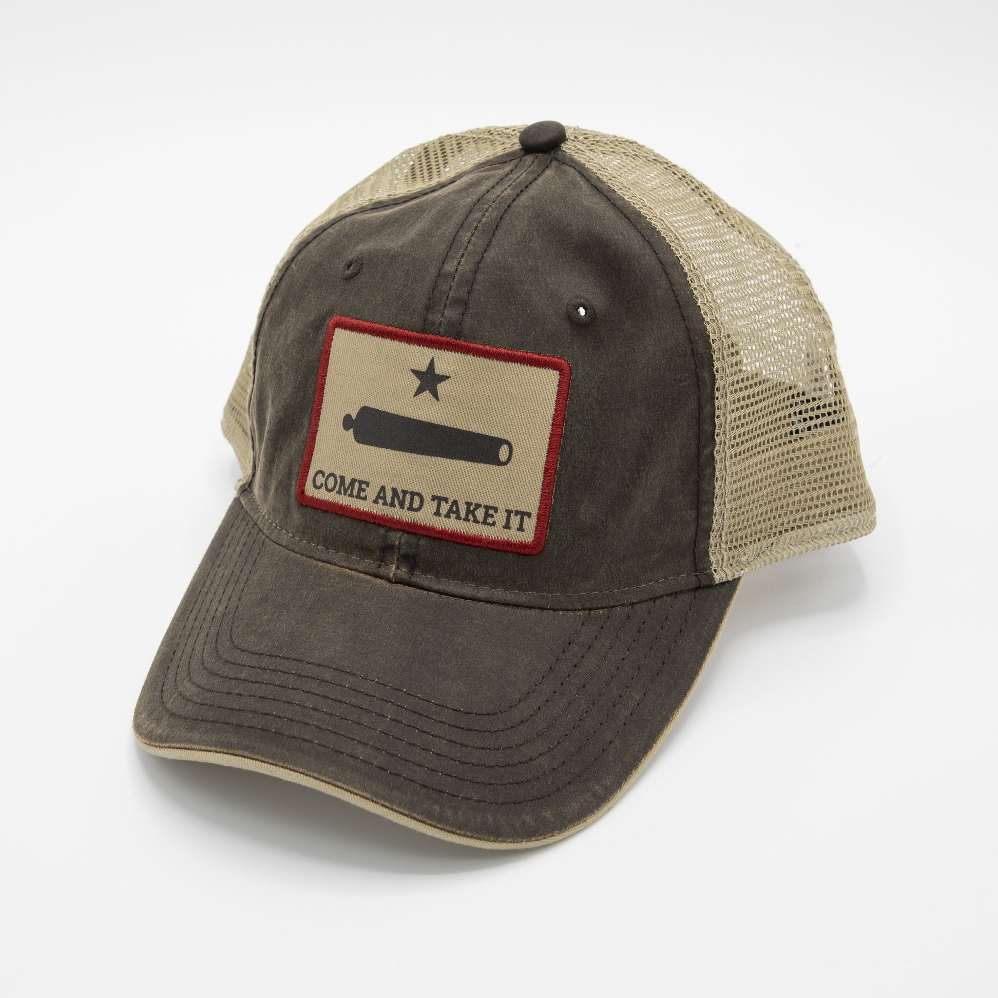 Grunt Style's Come And Take It Hat is a structured 6 panel cap made with waxy cotton to give it that worn in look on the front panels and visor. The back is soft mesh with a snap back enclosure. This Hat also features Front Center screen printed twill applique. One Size Fits Most.